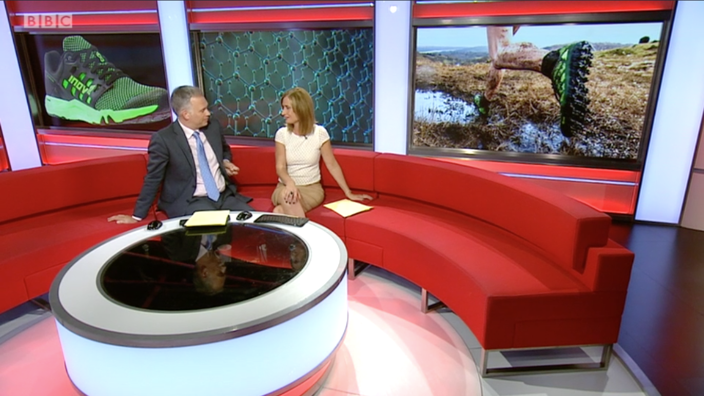 Working closely with experts at the University of Manchester, Inov8 are the first company to use Graphene in a sports shoe – the soles of the shoes are Graphene infused for increased durability, and there was a fair bit of (well deserved) hype surrounding the launch. So much so that the BBC got involved and a feature popped up on the evening news with one of my images appearing behind the presenters. A proud moment indeed!